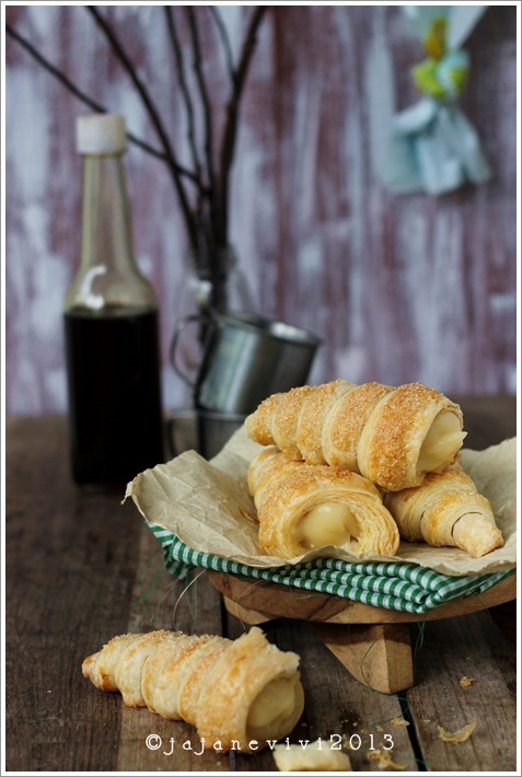 Berbentuk teropong inilah kue cumcum yang diisi fla dan dilapisi berlapis-lapis kulit pasry. kulit pastry, yang gurih dan campurkan tepung, margarin yang menjadi fla sangat lembut ketika kita mamakannya